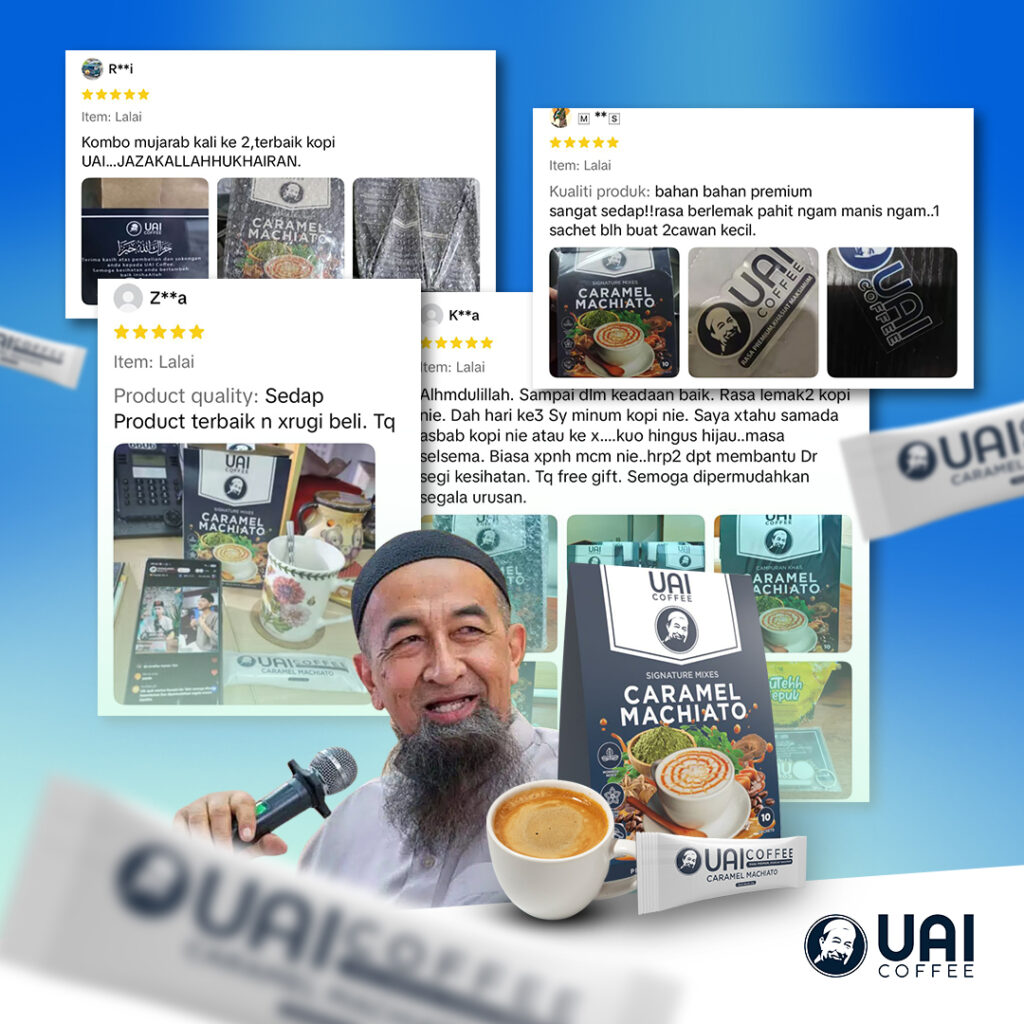 UAI Coffee dibuat daripada bahan aktif seperti Moringa, Sacha Inchi, dan White Tiger Mushroom, yang bantu kawal tenaga, gula, dan saraf secara semula jadi.